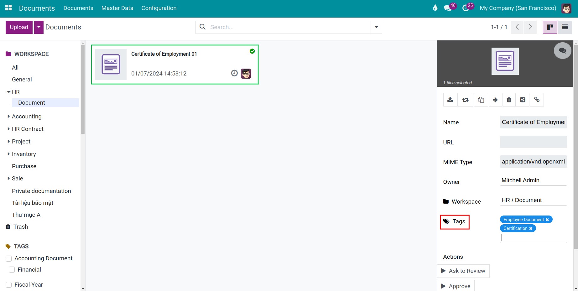 Now, the tags attached to this document will be changed accordingly to Approved.