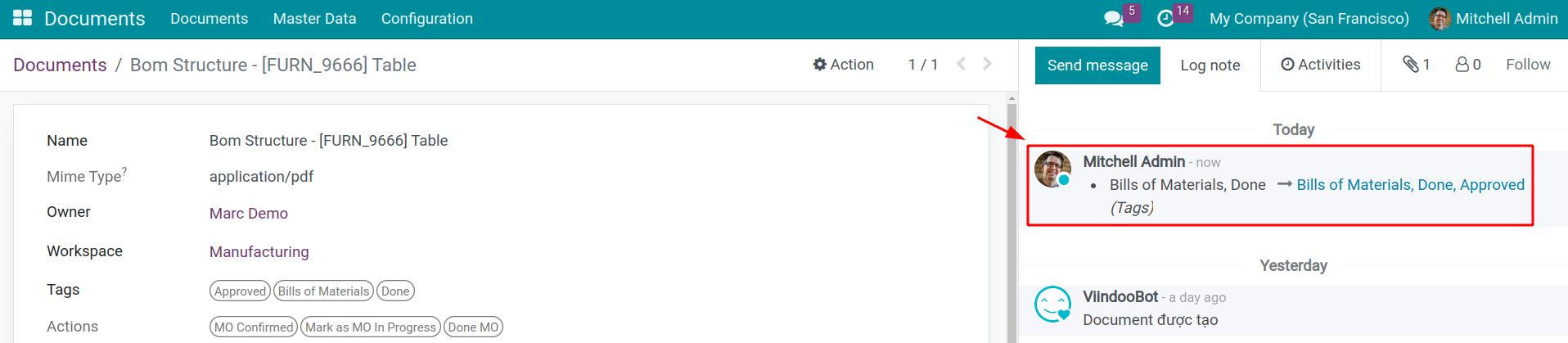 With the documents managed by Odoo Documents app, you can Ask to Review and Approve them.
